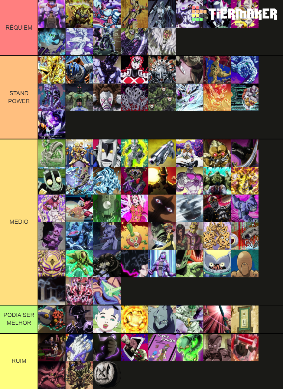 Jojo's Bizarre Adventure Anime Stands Parts 35 Tier List Stands Tier List Jojo create a ranking for best stands in jojo. ger should probably have it's own tier, i don't think any of the ss here could really beat it. this article lists every stand to appear so far in jojo's bizarre adventure and related media. this tier list considers how strong a stand is by itself: Drag the. Stands Tier List Jojo.